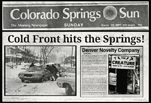 A few weeks ago I was traveling home from Kansas when I came upon a strange little attraction about 30 miles east of Denver. A giant stone cowboy welcomes weary travelers criss crossing along I-70. The Denver Novelty Company is a gas station/ souvenir shop, with a most frightening attraction named “The Creature” Walking into the main building I am confronted with an assortment of novelty, souvenir gifts. From Colorado mugs to gag items. The interior is plastered with weird signage beckoning one to the mysterious creature. One states “An atomic abomination from beyond!” Curiosity got the best of me and I decide to pay the one dollar admission fee to see what exactly this monster is.